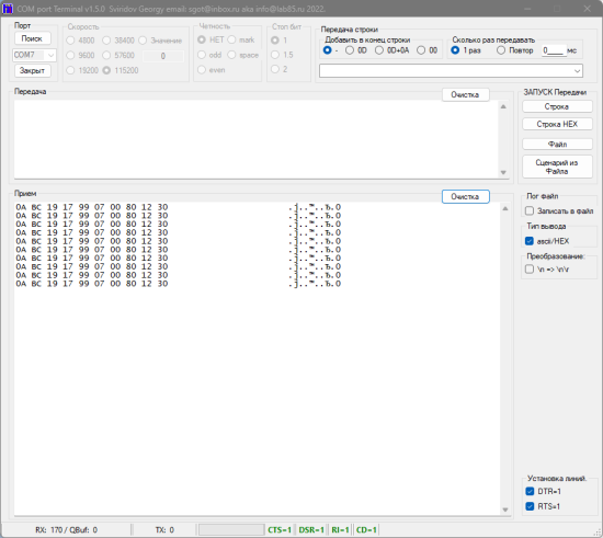 // Для примера я шлю из терминала строку HEX $AA$E0$07$08$03$19$02$AF$00$00$00$00$99