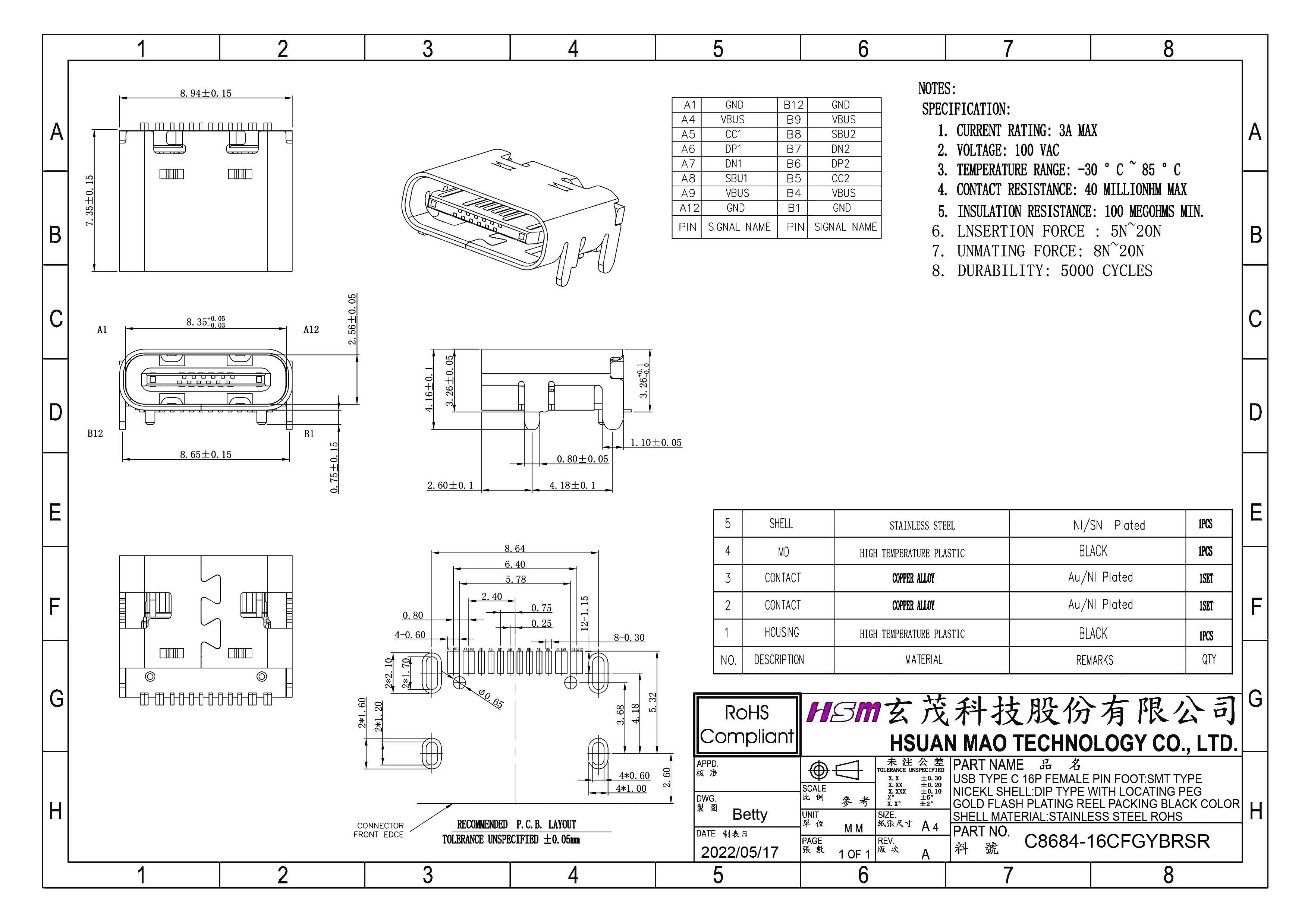 USB Type C 16pin