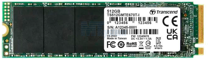 Твердотельный накопитель (SSD) Transcend TS512GMTE670T-I, 512 Гб, NVMe, 3D NAND TLC, 2280, спроектированный для применения в промышленных проектах