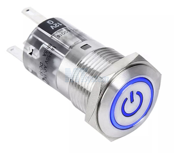 Кнопка промышленная Onpow LAS1-AGQ16-11ZET/G/12V/S антивандальная, Круглый, M16, Сталь, с подсветкой, С фиксацией [Latching], IP40