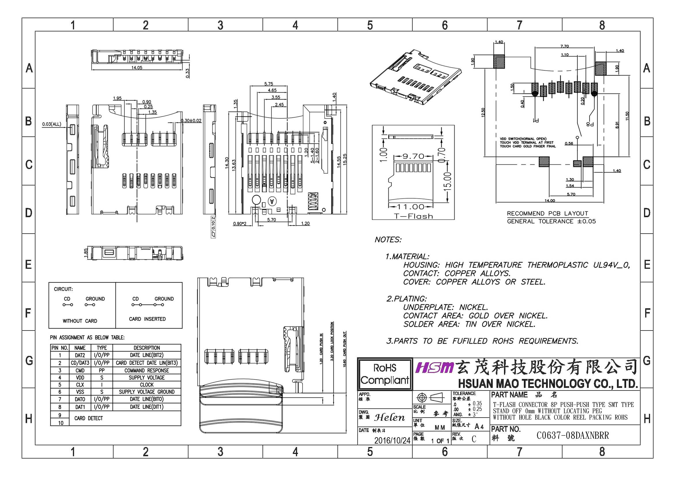 Держатель карты памяти MicroSD - Hsuan Mao C0637-08DASNBRR, Push-Push, h=1.85 mm